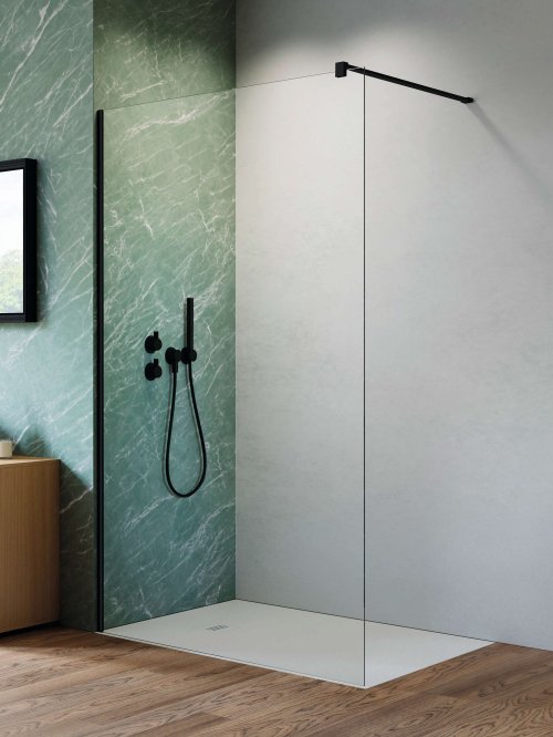 6 mm vastag Easy Clean vízlepergető bevonattal ellátott edzett üvegből gyártjuk, mely elsőrendű megoldás vízkőfoltok, lerakódások megakadályozására.